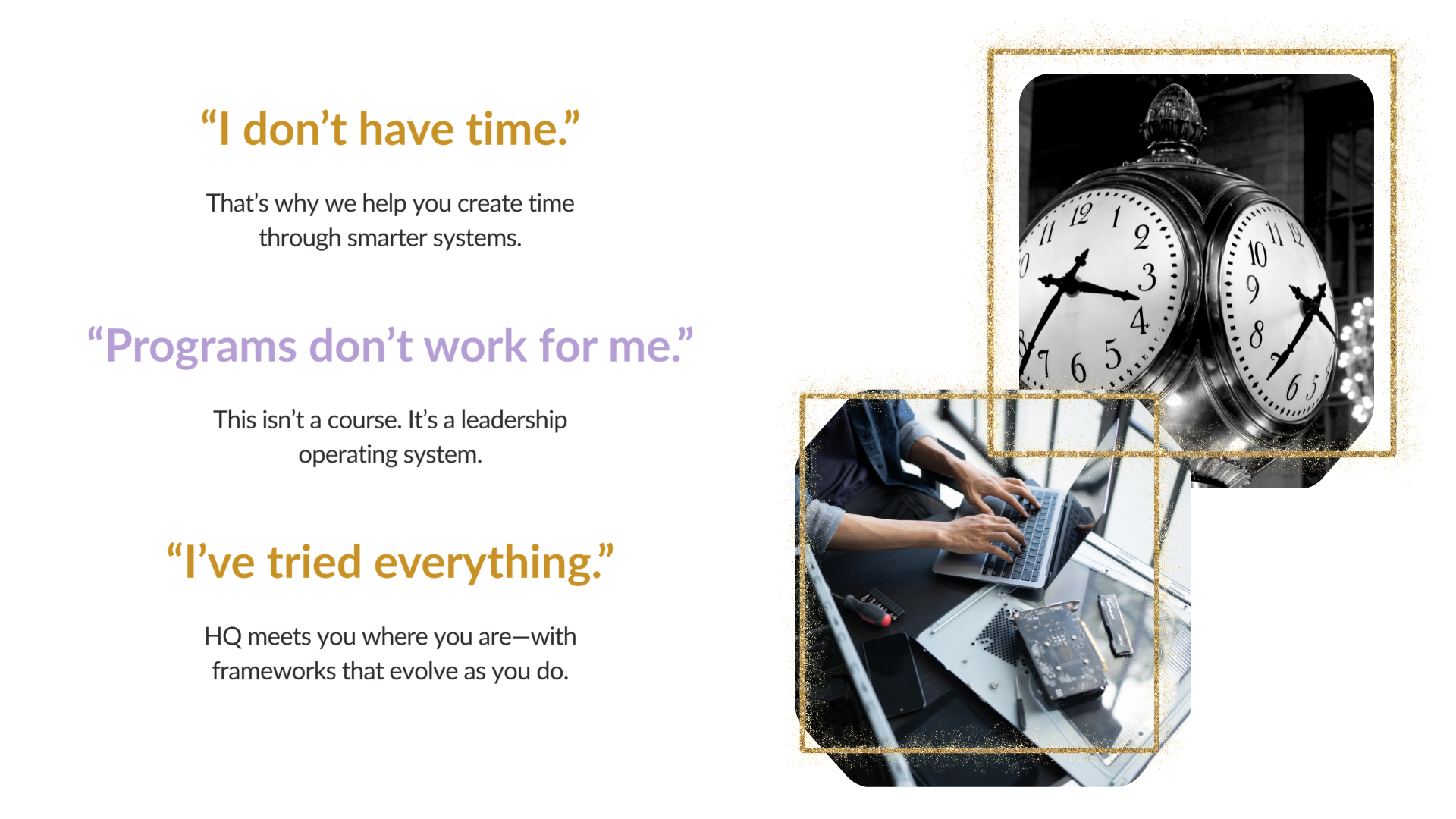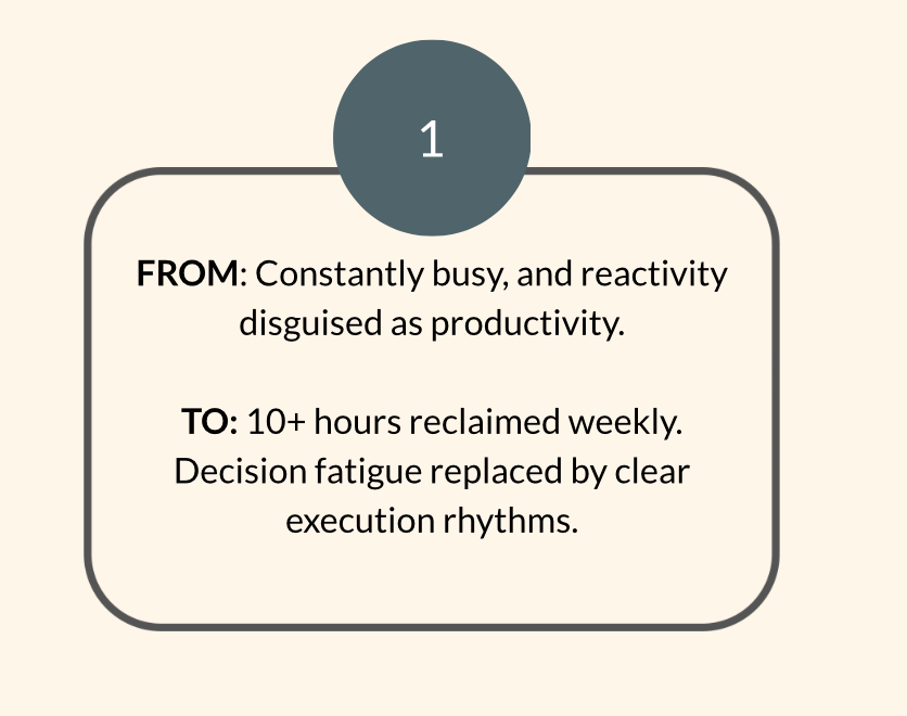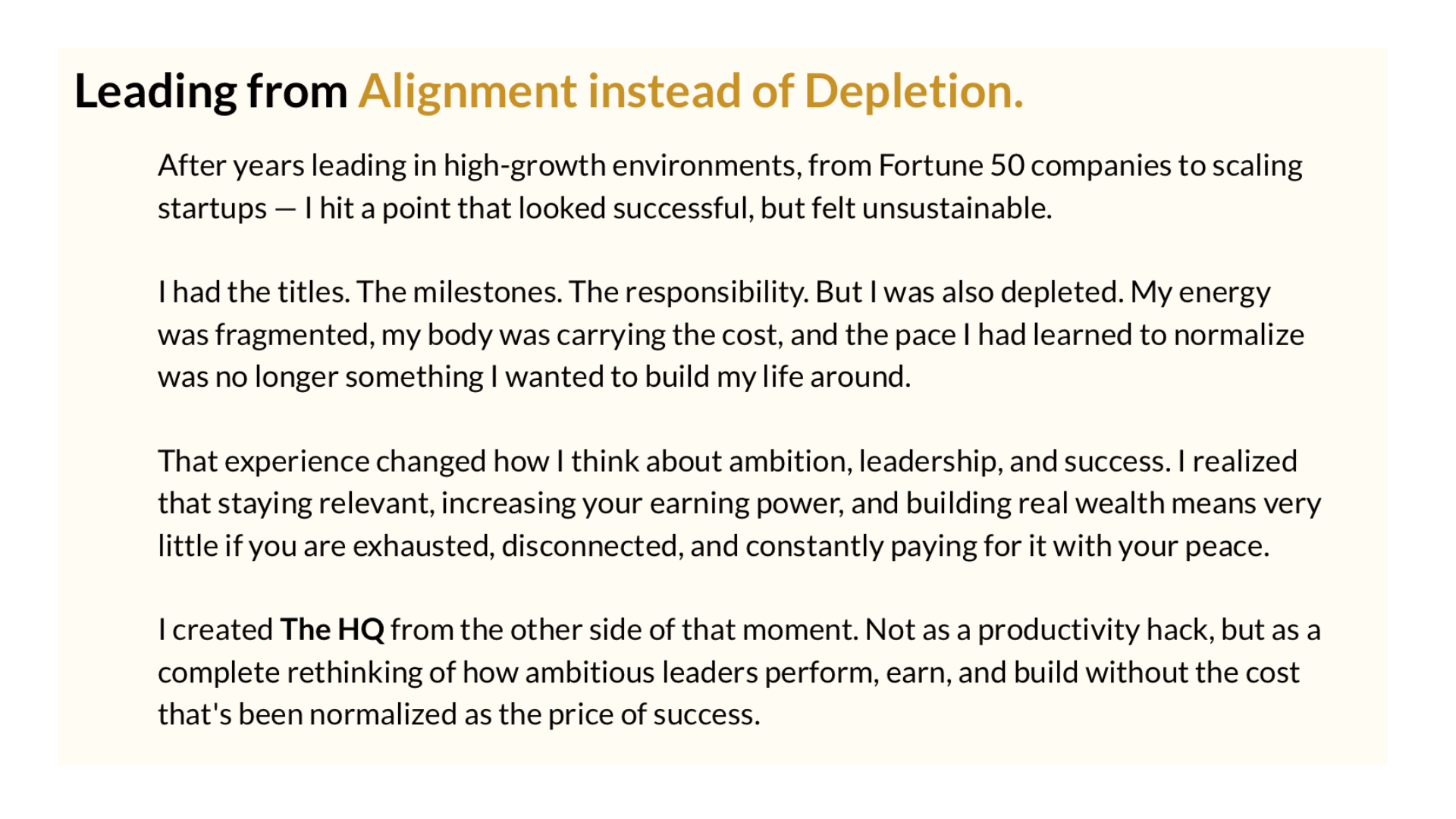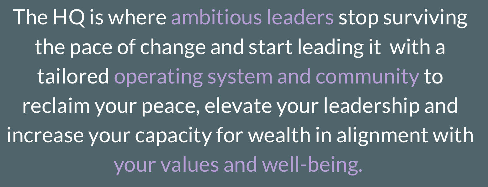 You need  The HQ — A tailored system that elevates your leadership, your earning power, and your well-being.  All at once.